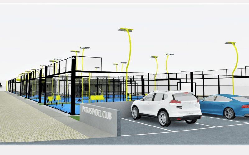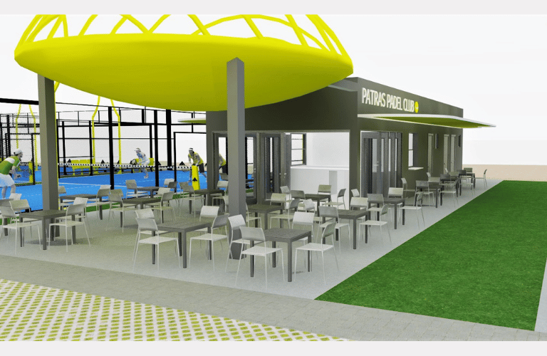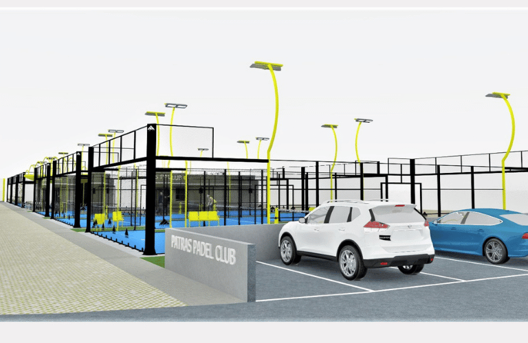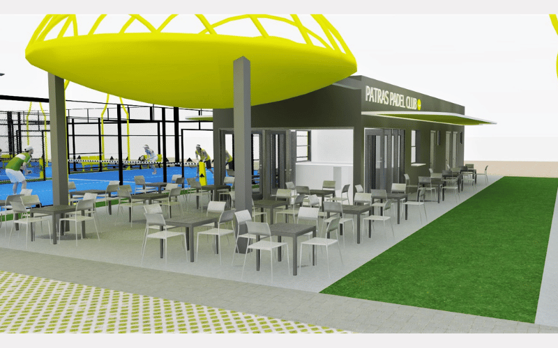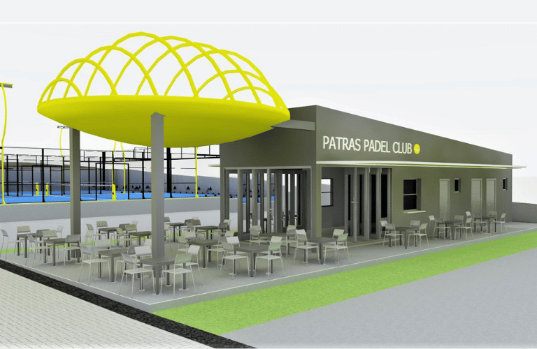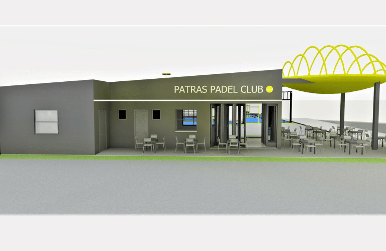 Η αρχιτεκτονική μελέτη για το νέο αθλητικό κέντρο Padel Club σε προάστιο της Πάτρας έχει σχεδιαστεί με στόχο τη δημιουργία ενός σύγχρονου, λειτουργικού και ελκυστικού χώρου άθλησης και κοινωνικής δραστηριότητας. Το συγκρότημα αναπτύσσεται αρμονικά γύρω στο περιαστικό περιβάλλον με τα γήπεδα padel, τα οποία κατασκευάζονται σε συνεργασία με την εταιρεία Adidas, σύμφωνα με τις προδιαγραφές που ορίζει η ομοσπονδία, εξασφαλίζοντας υψηλή ποιότητα επιφάνειας, αντοχή και άνεση κατά το παιχνίδι.