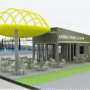 Σημαντικό στοιχείο της σύνθεσης αποτελεί το κεντρικό στέγαστρο, το οποίο είναι εμπνευσμένο από τη μορφή του μπαλακιού padel και λειτουργεί όχι μόνο ως προστασία από τη βροχή και τον ήλιο, αλλά και ως αρχιτεκτονικό τοπόσημο που χαρακτηρίζει και ταυτοποιεί το σύνολο του έργου. Η μορφή του επιδιώκει να δημιουργήσει έναν άμεσα αναγνωρίσιμο όγκο, προσκαλώντας τον επισκέπτη να εισέλθει στο χώρο και ενισχύοντας την επιχειρηματική ταυτότητα του κέντρου.